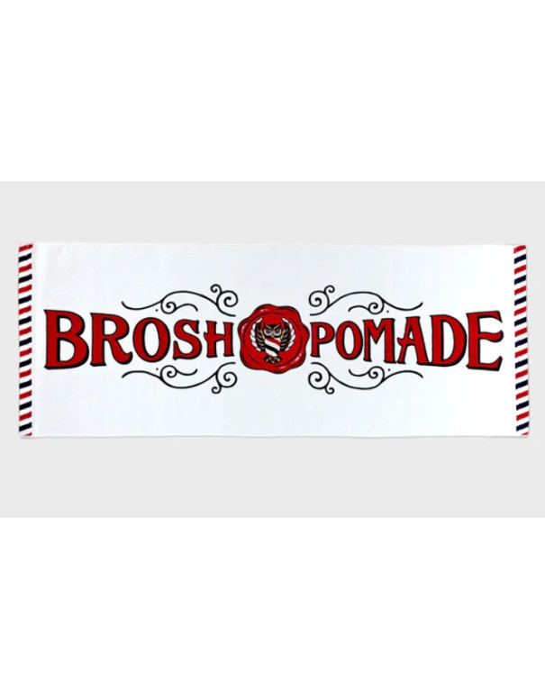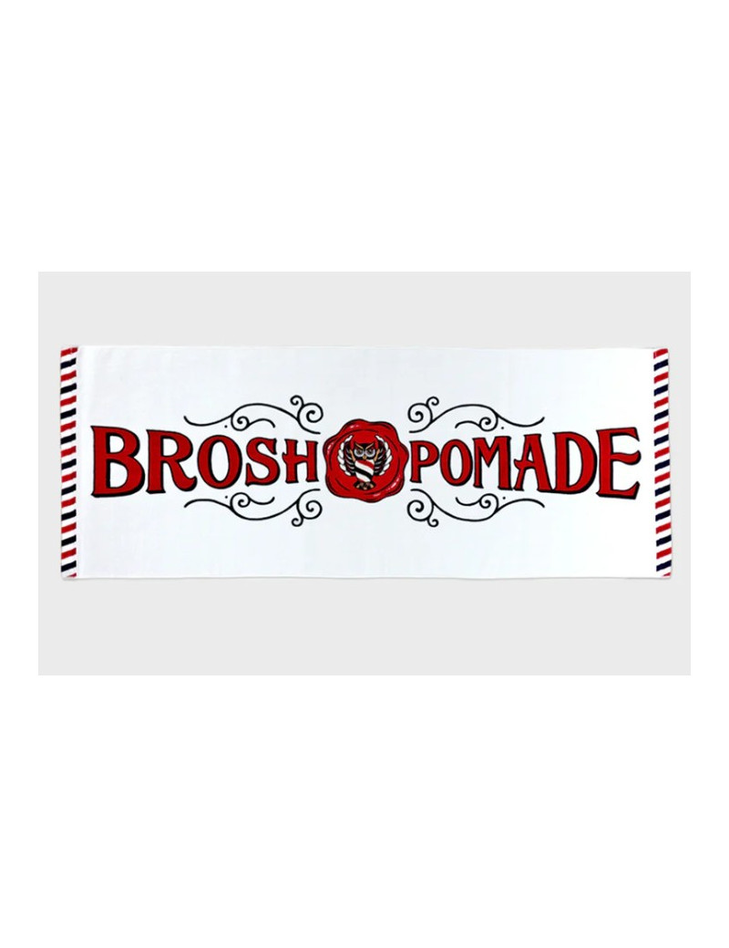 Brosh Original Towel. An original towel inspired by the design of Aoi from RUM ART WORKS, who is responsible for BROSH's package designs. The hem features a tricolor detail combined with a distinctive barber-themed accent.