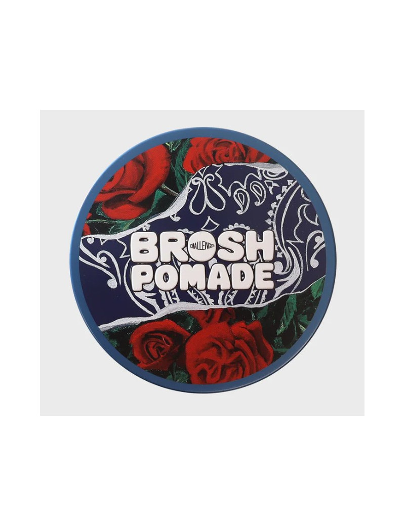 Pomada Brosh x Challenger de 115 g. Desde la fundación de la marca, las bandanas han sido una constante en su historia de diseño. La serie, que combina bandanas y flores, se ha convertido en uno de sus motivos distintivos. Esta edición presenta un diseño que incorpora el aroma a ROSA de la pomada y un estampado de bandana que representa a CHALLENGER.